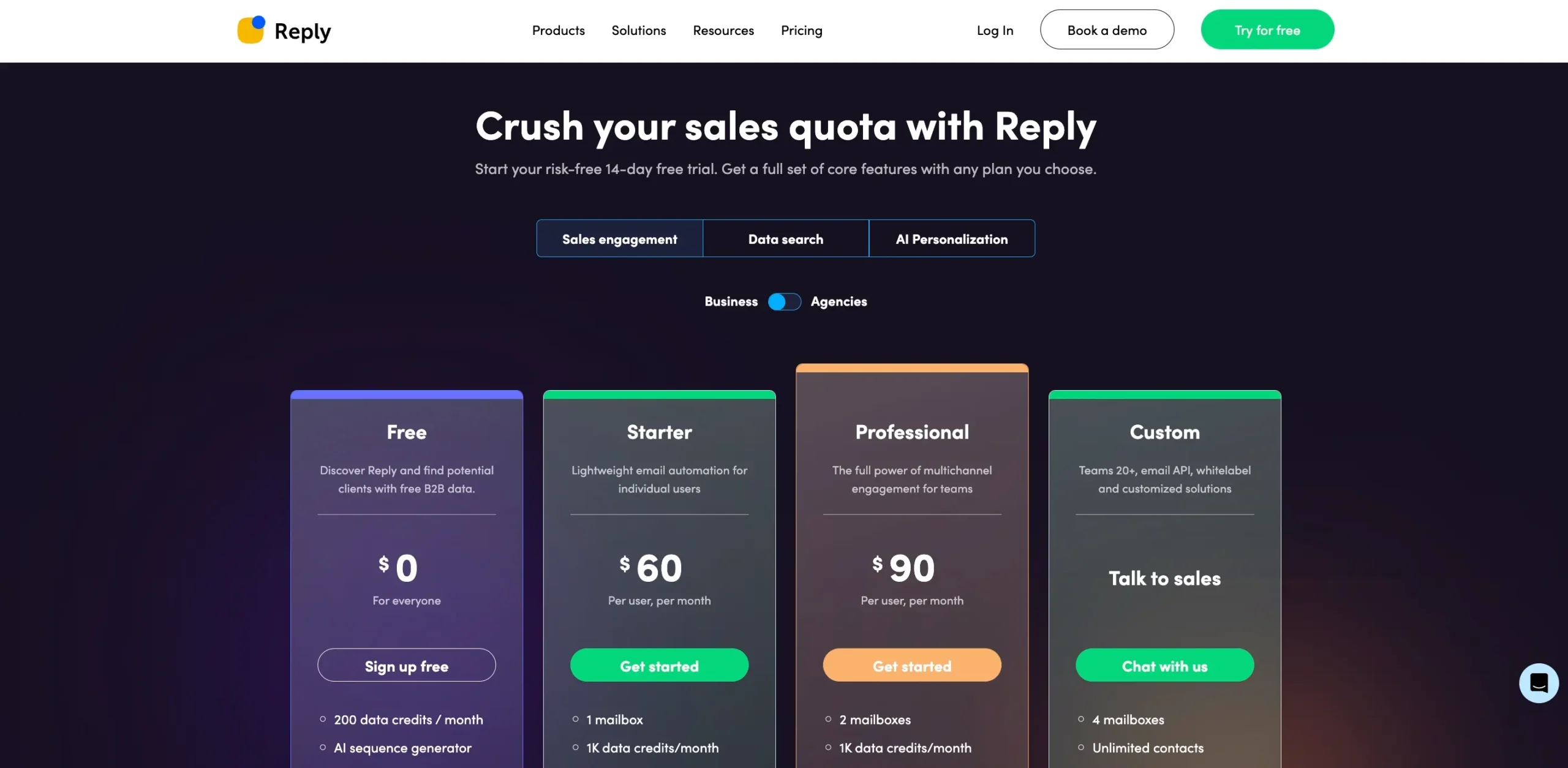 Targeted towards new users exploring Reply’s features, this plan is free of cost. Features include: