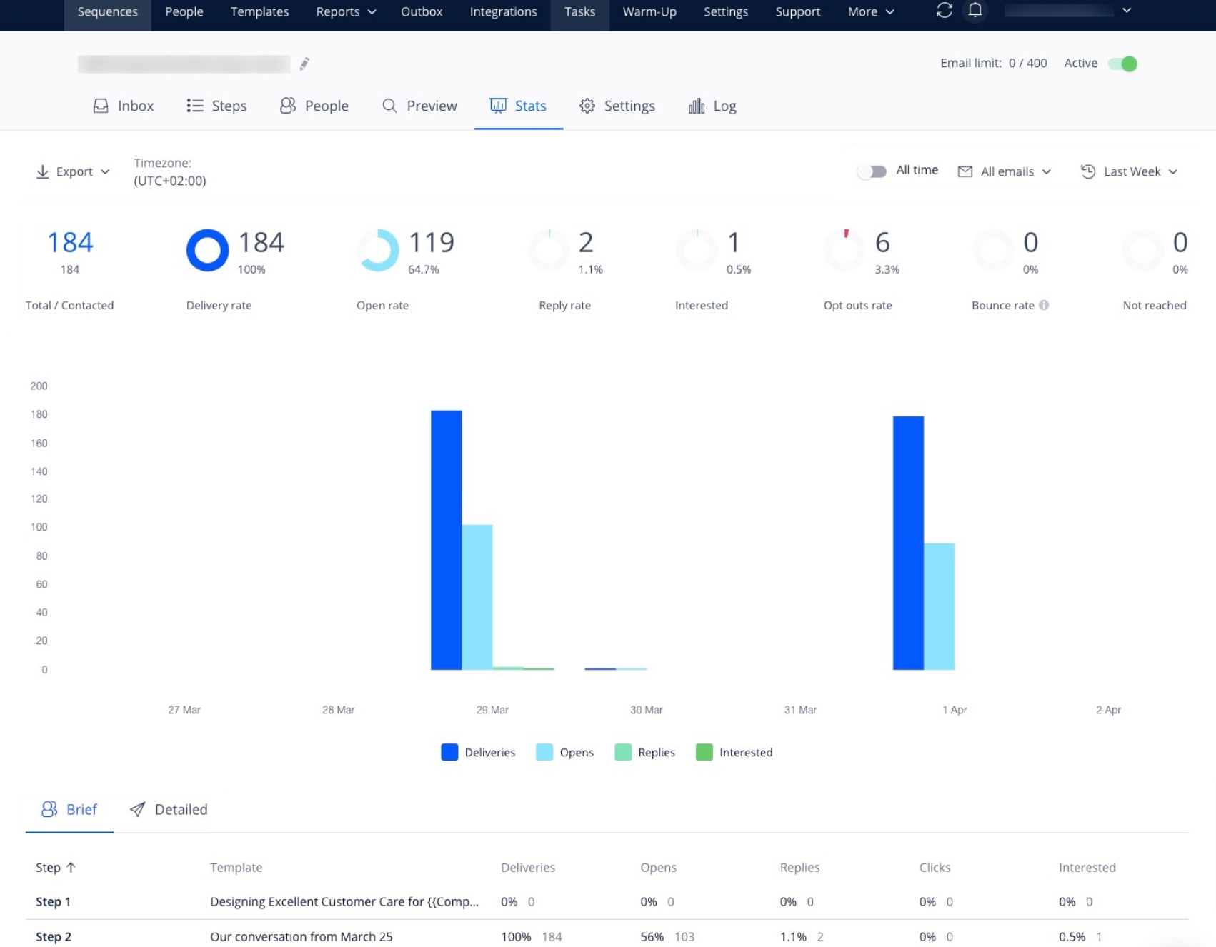 It offers detailed insights, allowing businesses to make more informed decisions than they might with other tools. Key metrics available include Sent, Opened, Clicked, Replied (excluding automatic replies), and Warm replies (marked as positive responses by Growbots’ algorithm).